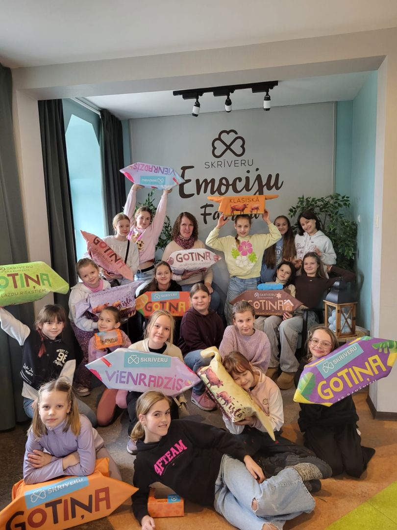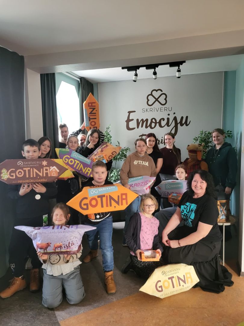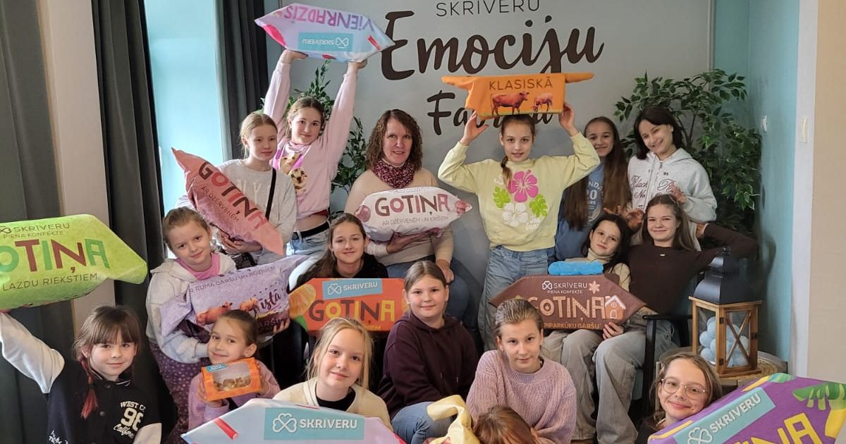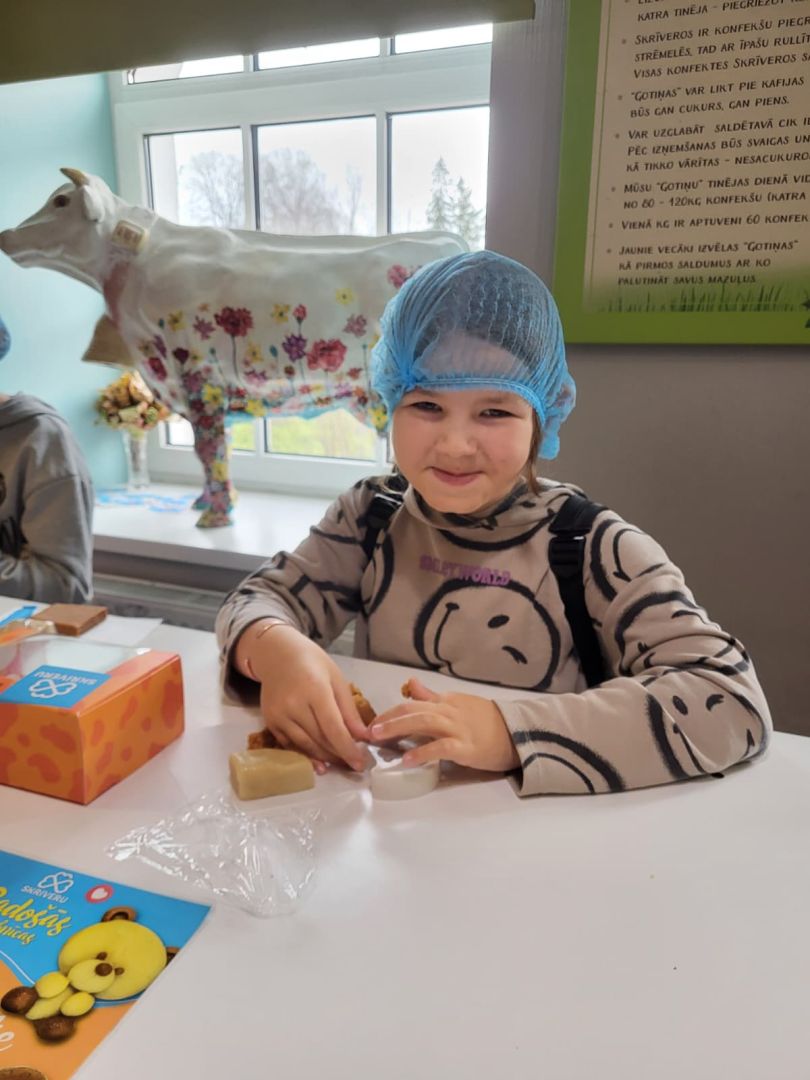 Pēc aizraujošajām darbnīcām RADADA, ekskursija turpinājās uz Skrīveru saldumiem. Šeit bērni ieguva ieskatu konfektes "Gotiņa" tapšanas procesā un uzzināja tās saldo recepti. Šis bija lielisks veids, kā iepazīties ar ģimenes uzņēmuma vēsturi un tradīcijām, kā arī uzzināt daudz interesantu faktu.