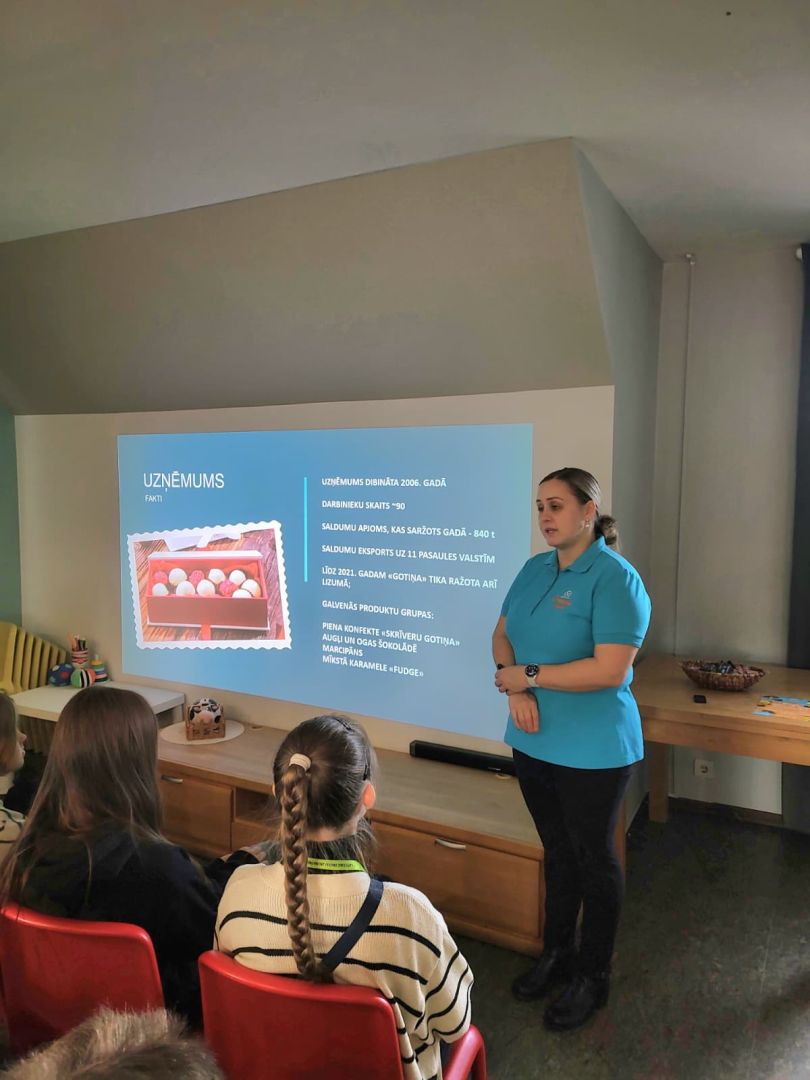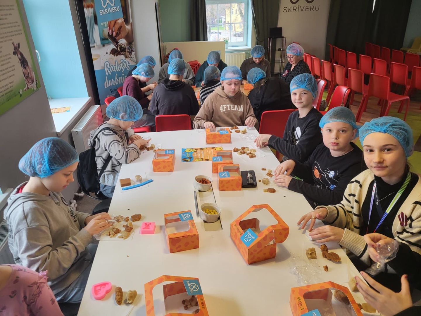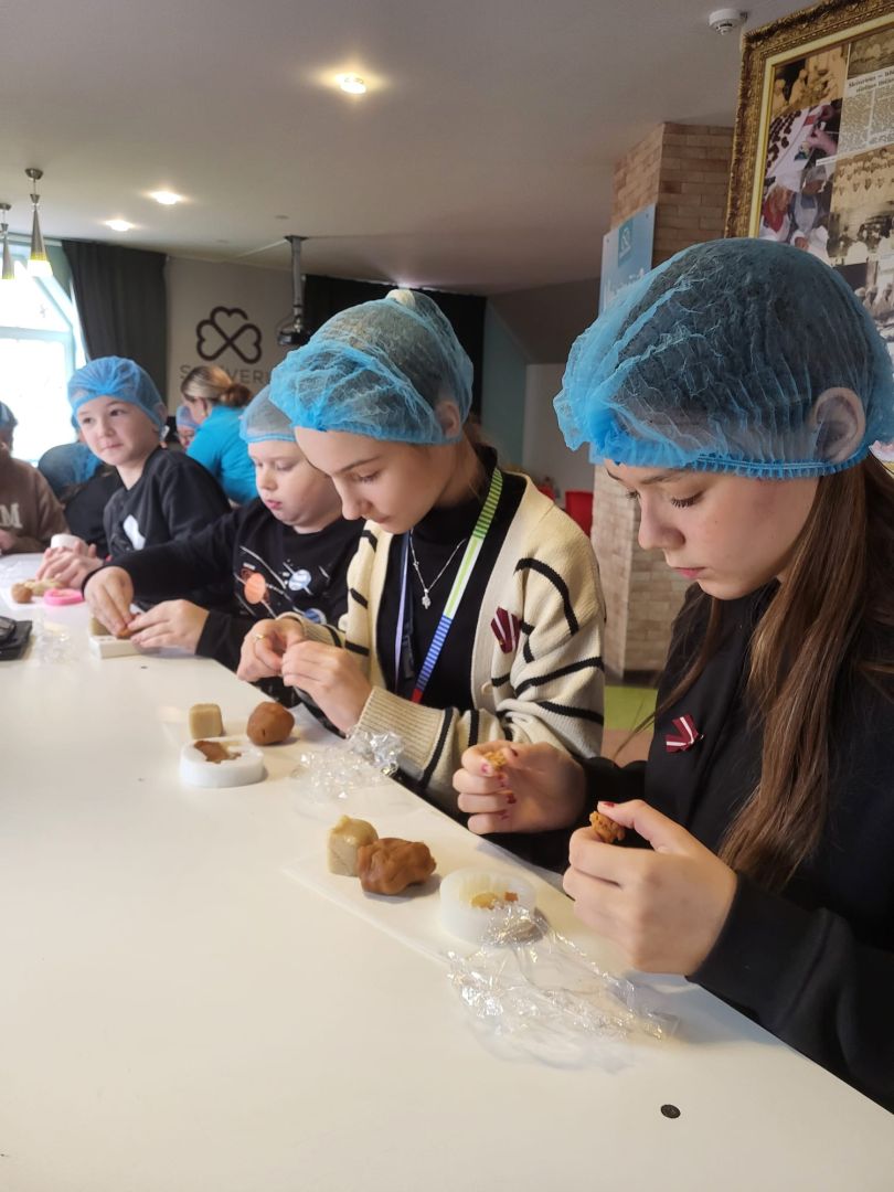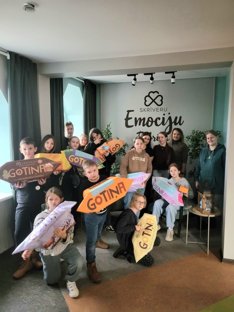 Pēc aizraujošajām darbnīcām RADADA, ekskursija turpinājās uz Skrīveru saldumiem. Šeit bērni ieguva ieskatu konfektes "Gotiņa" tapšanas procesā un uzzināja tās saldo recepti. Šis bija lielisks veids, kā iepazīties ar ģimenes uzņēmuma vēsturi un tradīcijām, kā arī uzzināt daudz interesantu faktu.