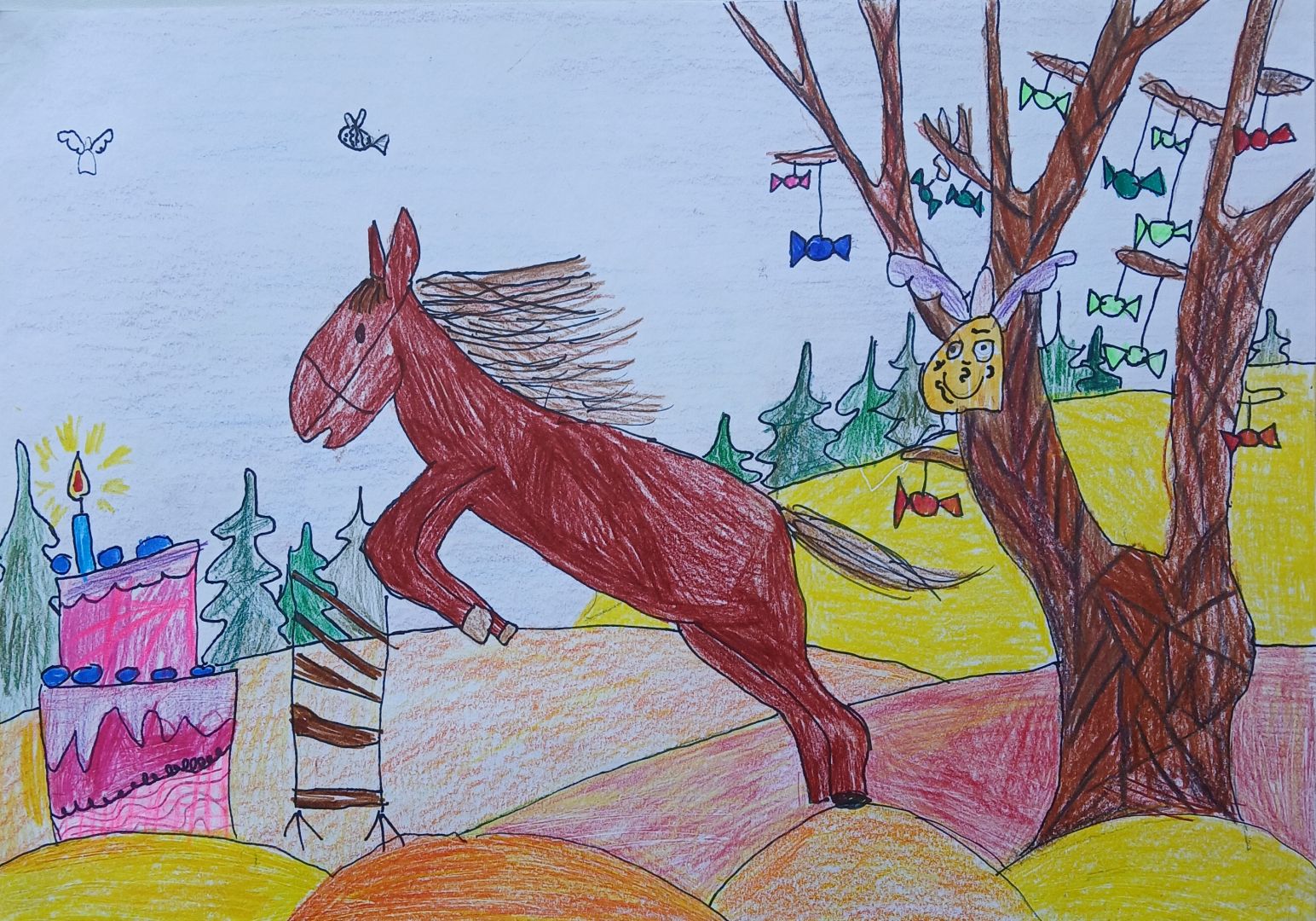 Aicināti iepazīt zirgu pasauli, iedvesmojoties no kādas latviešu tautas dziesmas, folkloras vai, izdomājot un īstenojot savu ideju, kas saistās ar zirgiem, Bērnu un jauniešu centra audzēkņi radīja savus radošos mākslas darbus.